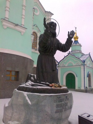 Гостей приглашать не решилась… Во-первых, сил на все это нет, и не долечилась – не хочется заражать никого… Отложили праздник до лучших времен. Но я доехала до Коренной пустыни. Это мужской монастырь, я вам как-то писала о нем. Место потрясающее – животворящее. 700 лет назад здесь был лес, в котором охотник нашел у корня дерева иконку Божией Матери. На месте обретения забил источник. Икону хотели переместить в более цивилизованное место, но она возвращалась на место обретения. Тогда поставили часовенку, а позже построили монастырь. Летом икона хранилась в монастыре, а на зиму ее крестным ходом переносили в Курск. (Помните Репина «Крестный ход в Курской губернии»? Это со Знаменской иконой Божией Матери идут.) Над источником выстроили храм. Под сводами крытая лестница, благодаря ей на богослужении могли присутствовать сотни человек. (Сейчас она на реставрации, и храм этот на реставрации). К источнику надо спуститься по внушительной лестнице. Но ступенечки мелкие – и спускаться, и подниматься легко даже престарелым и больным людям. На верху слева вы видите храм. Исторически он там и стоял, но во времена Советской власти его взорвали, источник пытались забетонировать, на месте монастыря открыли ПТУ… Но бабушки помнили это место, и в одиночку приходили сюда. Источник все-равно пробивался, люди съезжались за святой водой. Трудно представить, но еще совсем недавно здесь было разоренное пепелище. А снесенный храм отстроили года два назад. И внутри в нем ощущение, что это не наводел, а старинное намоленное место. Кстати, икону, спасая от большевиков, увезли сначала в Европу, а потом в США. Это самая почитаемая икона среди русских эмигрантов. Второй год подряд ее привозят для поклонения в Курск. Ну а это образ батюшки Серафима Саровского. Родом он из Курска. В детстве он умирал, и его мама попросила во время крестного хода пронести чудотворную икону над сыном – сын выздоровел и посвятил свою жизнь служению Богу. Памятник поставили чуть раньше, чем возвели храм, но не покидает ощущение, что все это было здесь всегда. Дарю вам эту радость и это место! |