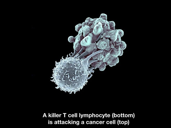 Для начала, антигенпрезентующие клетки иммунной системы (APC) берут куски патогена и путешествуют в лимфоузлы, где встречаются с T-лимфоцитами / T-cell. При встрече они говорят “гляди, чего у меня есть!”. T-лимфоциты видят, что кусок патогена не является родной частью организма, и превращаются в один из двух видов: либо в Т-киллеры (cytotoxic T-cell, которые умеют убивать) либо в Т-хелперы (T-helper cell, которые активируют B-лимфоциты / B-cell). B-лимфоциты умеют производить огромное количество антител / antibody). Антитела доставляются к месту инфекции и очень сильно помогают другим клеткам иммунной системы обнаруживать и уничтожать патогены. Процесс выработки антител не сильно быстрый, концентрация достигает пика дней через 10–15. Т-киллеры Лимфоциты адаптивной иммунной системы, которые также уничтожают клетки организма, с которыми не все в порядке.