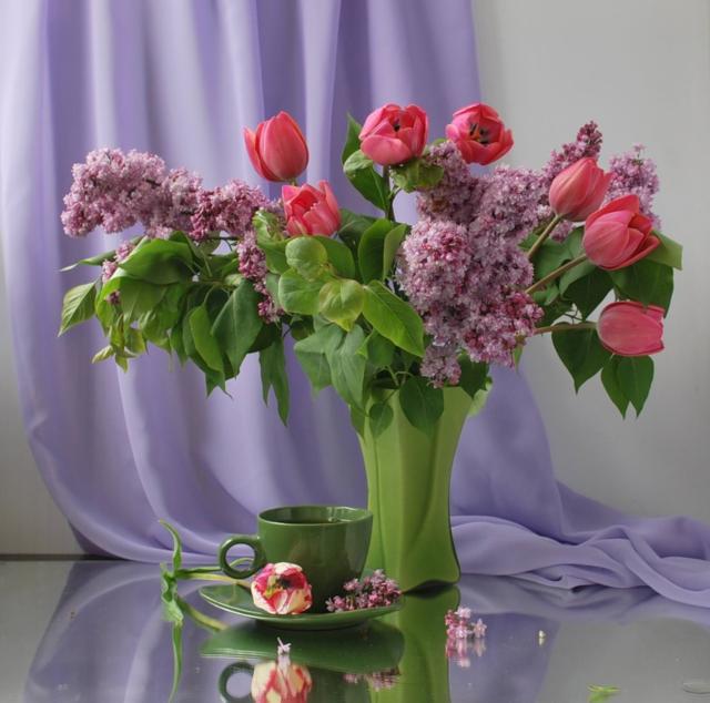 что интересно, сейчас искала фотографии, а обнаружила, что многие художники изображают сирень с тюльпанами - не зря - видимо настолько прекрасное сочетание