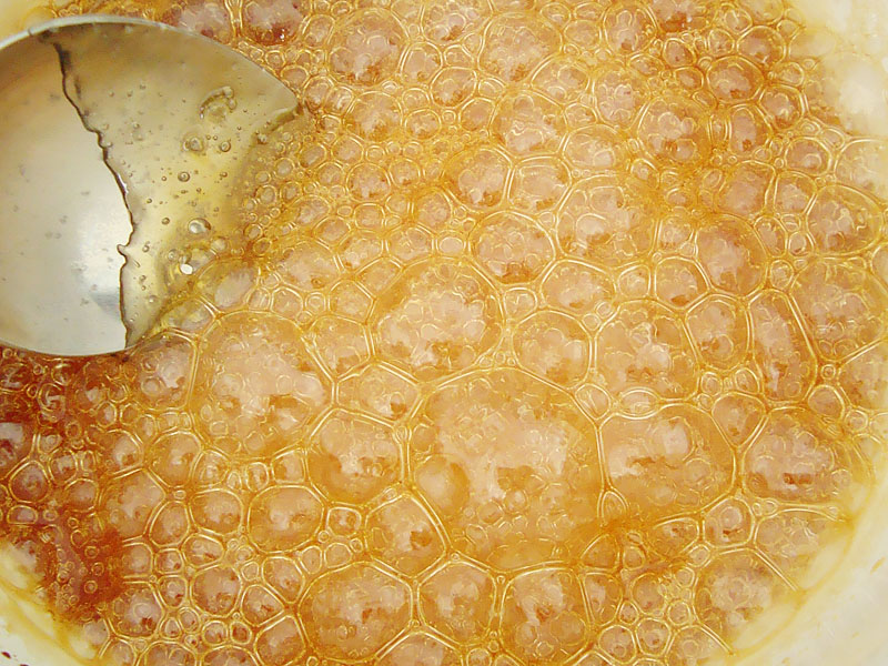 Ингредиенты: Тесто: 100 гр слегка размягченного маргарина\масла 1\2 чашки сахара 150 гр муки 1 желток 1 ст.л. воды Мусс: Йогуртовая часть: 150 гр греческого йогурта 200 гр сливок для взбивания 10 гр ванильного сахара 1 ст.л. сахара 15 гр быстрорастворимого желатина 1 упаковка закрепителя для сливок Карамельный соус: 1 чашка сахара 2 ст.л. воды 150 гр сливок 10% + 3-4 персика абрикосы\персики для украшения 1. Взбить масло с сахаром. 2. Добавить желток и воду, опять взбить. 3. Просеять муку на стол, в цент выложить масло и замесить тесто подсыпая муку к краям пока вся не впитается, пару раз обмять о стол. Долго не месите - станет жестким. 4. Завернуть в пленку, приплюснуть и убрать в холодильник на 30-60 минут. 5. Развести желатин стаканом кипятка, оставить остывать. 6. Сахар с водой нагреть до золотого цвета, мешать можно только пока не растворится сахар иначе может не получится карамель. Выключить. 7. Добавить горячие сливки и перемешивать до растворения карамели, осторожно может брызгаться и шипеть.Если нужно можно включить небольшой огонь.Оставить остывать. 8. Взбить йогурт с сахаром и ванильным сахаром, добавить желатин и перемешать. Отдельно взбить сливки с закрепителем и осторожно вмешать в мусс. Добавить слегка остывший карамельный соус (~50 градусов уже можно) и перемешать. 9. Пальцами распределить тесто по форме смазанной маслом и выложенной пекарской бумагой, сильно наколоть вилкой и печь в разогретой до 200 градусов духовке 12-15 минут. 10. Мелко нарезать персики. 11. Выложить персики на горячее тесто, оставить остывать. 12. Вылить мусс и убрать в холодильник хотя бы на ночь. Перед подачей украсить тонкими кусочками абрикосов. Можно покрыть желе для торта или смазать разведенным конфитюром\вареньем. Приятного аппетита! |
