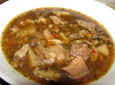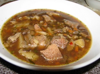 У нас на обед грибной суп с перловкой и свининой: