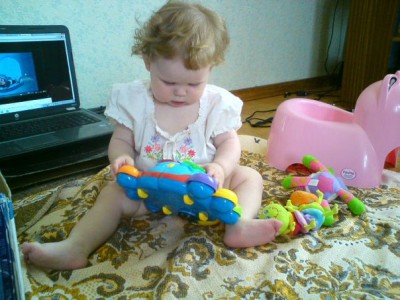 Вот такая моя толстушка!)) Обожает играть.. Рожицы корчить!!)))) Вот так ездить в коляске и смотреть на колеса.. Ездить на новом горшке отталкиваясь ногами!))) А еще у нас новый папа!)))) |