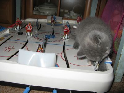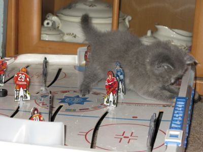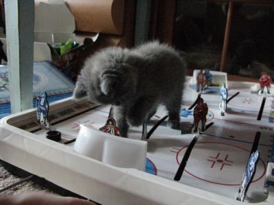На льду три команды: синие, красные и Пани Кристи. Матч начинается. Пани Кристи сразу переходит в атаку: Она ловко обходит одного из игроков второго И подбирается к самым воротам Неважно, что шайба в это время находится далеко в стороне, Кристи ждёт паса, а заодно забрасывает в ворота свои лапы Ай-ай-ай.... Разве так играют? Делать такие неспортивные подсечки игроку команды противника? Да еще и кусать его за голову... Игрок Пани Кристи заслуженно оказалась на скамейке штрафников. Теперь за игрой ей придется только наблюдать... |