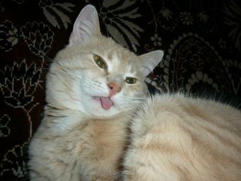 Он всегда был центром внимания, а с появлением сынульки у него появилось много запретов( напремер в краватку ни-ни).Плач малыша его раздражал (сыночек плакал редко,спокойный ребенок). И наказывал Персик тех, от чьего вмешательства ребенок плакал. Так к нам пришла участковая врач на осмотр, я положила сынульку на столик пеленальный и врач приступила. Игорьку не понравились прикосновения и он давай возмущаться во весь голос. Перс терпел, терпел, потом подошел к врачихе, издал протяжный мя-я-я-у и вцепился ей в ногу зубами. Хорошо врач была в сапогах! ![]() |