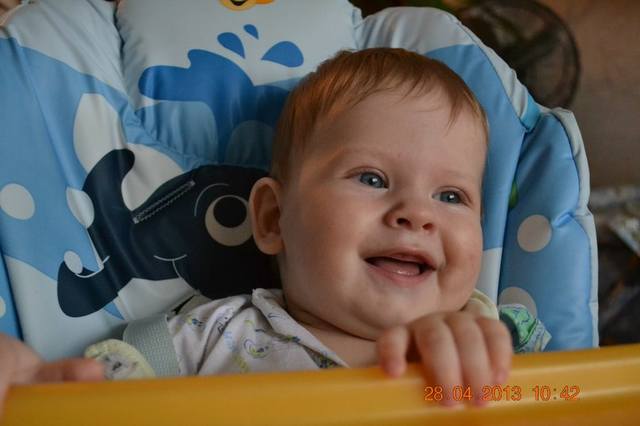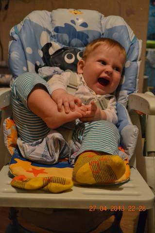 Наши основные умелки в 9 мес: Ходим вдоль опоры, стоим, ползаем, сидим, говорим МАМА, ПАПА, БАБА, АВА, показываем язычок, делаем пппппппппрррррррррррр и куча слюней, крутим мамки соски, типо радио настраивает, любим себя любимого в зеркале рассматривать и его же, зеркало целовать, стучит по всему всегда и везде, простукивает, клад ищет видимо))), постоянно корчит рожицу, которую видно на втором фото сверху.))) Зубов нет, в верхней десне четко видны зубы, белеет десна, но еще не скоро думаю вылезут. Прикорм ввели почти все, едим хорошо и неплохой объем 160-180 грамм, аллергии ни на что ттт нет. |