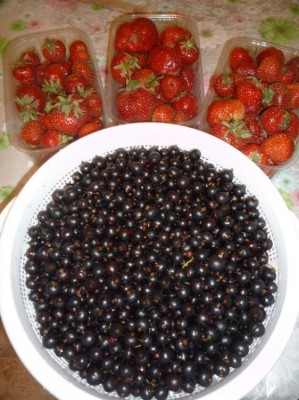 Как то так Клубника поздненькая,а смородина уже наша поспела. Я прикупила себе мисочку с ситом (дуршлаг), очень удобная хозяйстве вещь (разморозить, промыть, хранить....)
