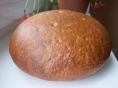 Хлеб на сеяной и пшеничной 2 с. Простой и незамысловатый. Воды взяла по нижней грани, можно было прибавить. Расстаивала на дощечке без диванов, и не расплылся. Мякиш плохо виден, не смогла как следует сфотать. |