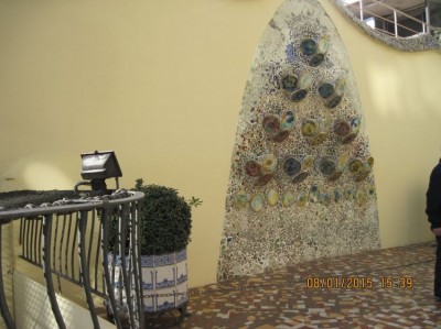 выходим на терассу- справа обьемное мозаичное панно,