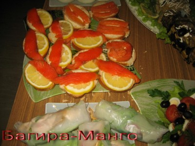 Мы вчера уже досрочно отметила праздник коктейльной вечеринкой. Приготовили небольшой фуршетный столик. Фаршированная щука http://forum.say7.info/topic27407.html попала только на общее фото стола