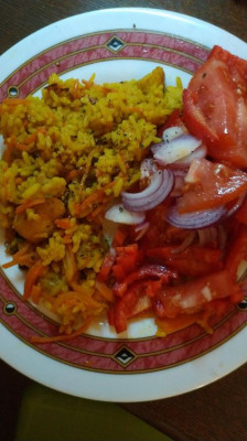 Плов и салат из помидоров,лука и сумаха