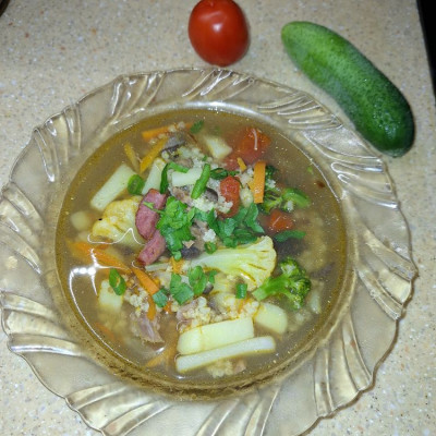 В первые варила суп с цветной капустой, ранее ее только тушила. Решила побаловать себя любимую, муж на дух запах цветной капусты не переносит.