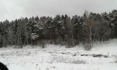 У нас опять началась зима. Опять я достала пуховик и тёплую обувь. Родители поехали на дачу: вид за окном машины сегодня: