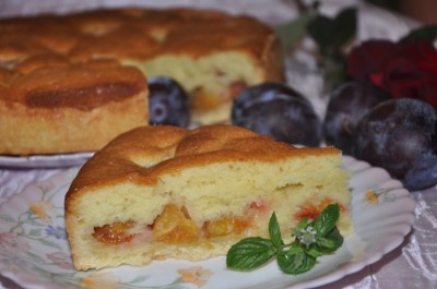Заливной пирог с абрикосами и сливами (мамин)