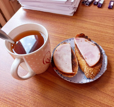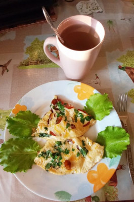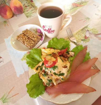 а на завтрак сегодня "вчерашний омлет", карпаччо из грудки индейки, кофе и козинак