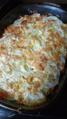 Рецепт моей мамы. Кабачков всегда бывает много, раньше было много и моркови. В этом году покупная. Один крупный кабачок Одна тертая крупная морковь Твердый сыр Майонез Растительное масло. Кипяток Соль Перец свежемолотый Количество зависит от вкуса и аппетита. У меня форма 30 где -то на 20. Кабачки резала секторами постепенно , заполняя форму, лишнее заморозила, чтобы не пропадало. Кладем в форму :с лой кабачков, слой морковки. На фото уже два слоя. Присаливаем и перчим. Слой тонкий сыра. Сверху опять слой кабачков. Здесь видно,что сектора тоненькие. А то запекаться будет долго. Присолить,поперчить. Не хотите. не любите,ну и не надо. Посыпать сыром, натертым на мелкой терке. Смазываем тонким слоем для румяной корочки. Можно заменить сметаной, но корочка будет не такая аппетитная. Чуть поливаем растительным маслом. И поливаем кипятком, приблизительно кофейная чашка. Лучше потом добавить. Запекаем в хорошо разогретой духовке на средней температуре. У меня это деление 4. Не знаю сколько градусов ![]() ![]() Запекаем до готовности кабачков,проверяем готовность ножом. У меня где -то в моей духовке час 20 запекалось. Духовки у всех разные. Если вода испарилась, то добавляем кипятка. Я чуть плесканула из чайника один раз. Кабачок уже суховат был. Достаем, даем чуть остыть,и блюдо легко делится на порции лопаточкой. И наслаждаемся! ![]() Приятного аппетита! ![]() |